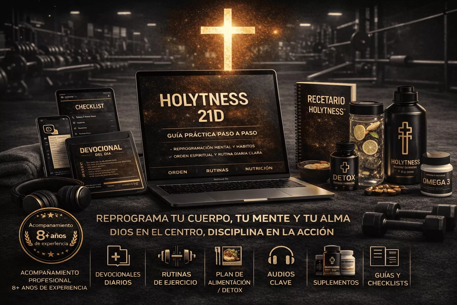 Con el movimiento Holytness ✞, encuentra propósito y vive una fe informada, práctica y coherente. Aprende principios bíblicos aplicados a hábitos reales para fortalecer tu cuerpo, mente y espíritu. Encuentra rutinas físicas con propósito, alimentación y autocuidado responsable, enseñanza bíblica clara y fundamentada, y oración aplicada a la vida diaria.